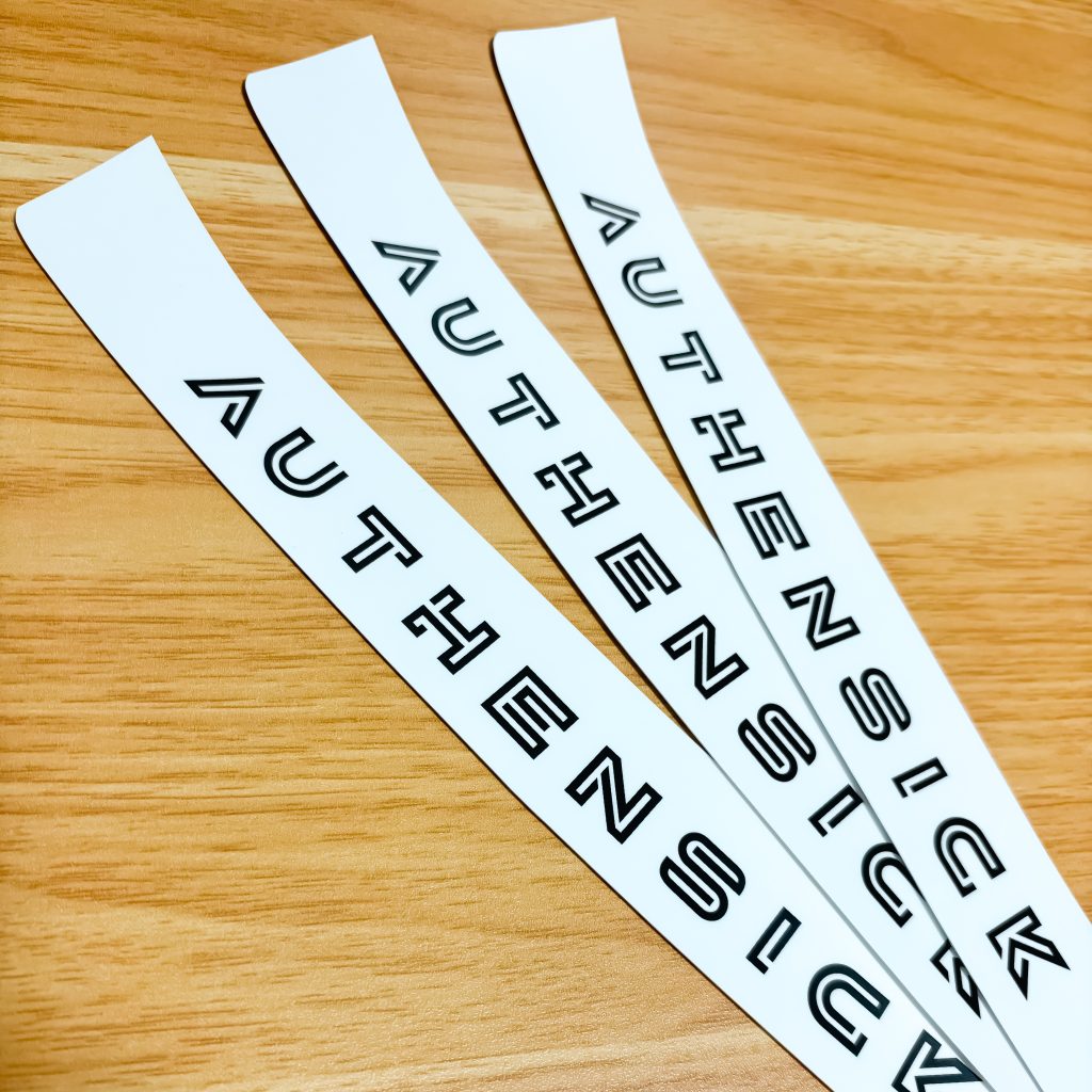 バイザーの形状に合わせ、1枚からオリジナル制作。チームロゴやスポンサー名など、世界に一つだけのデザインを実現します。
